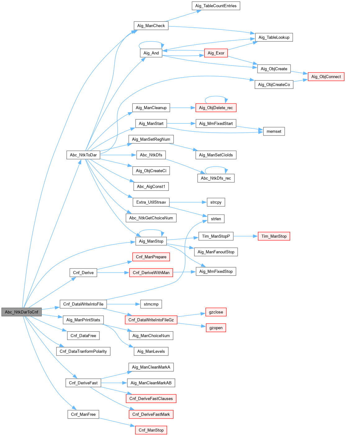 | Abc_Ntk_t * | Abc_NtkDarToCnf (Abc_Ntk_t *pNtk, char *pFileName, int fFastAlgo, int fChangePol, int fVerbose) |