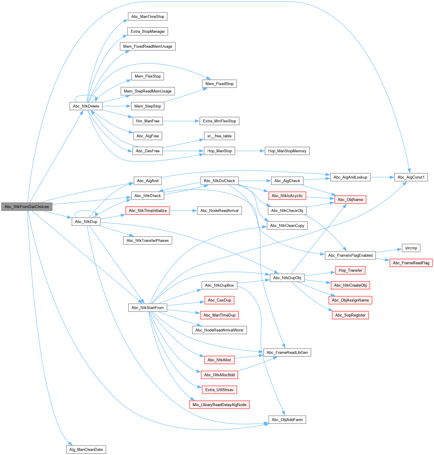 | Abc_Ntk_t * | Abc_NtkFromDarChoices (Abc_Ntk_t *pNtkOld, Aig_Man_t *pMan) |