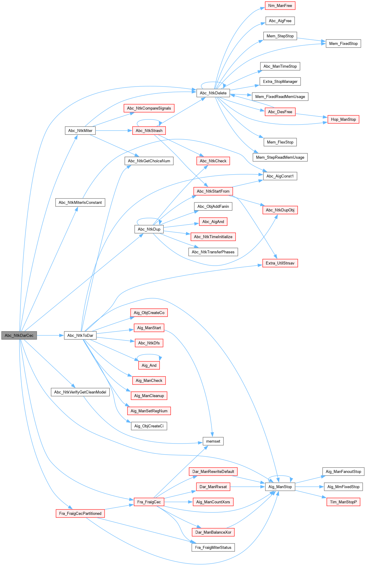| int | Abc_NtkDarCec (Abc_Ntk_t *pNtk1, Abc_Ntk_t *pNtk2, int nConfLimit, int fPartition, int fVerbose) |