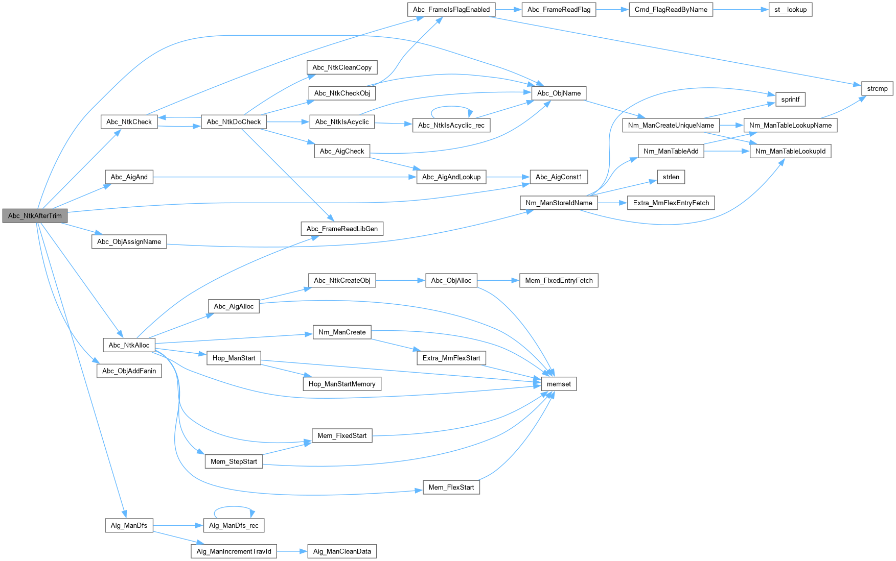 | Abc_Ntk_t * | Abc_NtkAfterTrim (Aig_Man_t *pMan, Abc_Ntk_t *pNtkOld) |