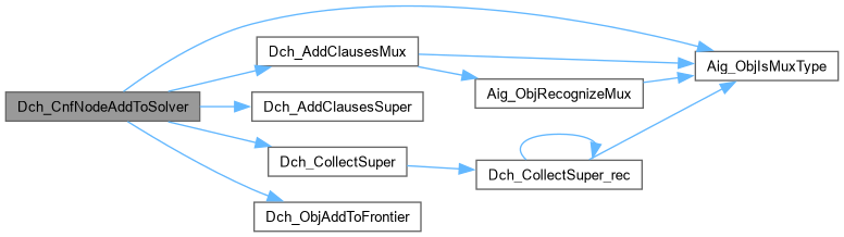 | void | Dch_CnfNodeAddToSolver (Dch_Man_t *p, Aig_Obj_t *pObj) |