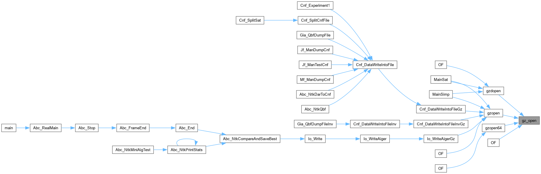 | gzFile ZEXPORT | gzopen (const char *path, const char *mode) |