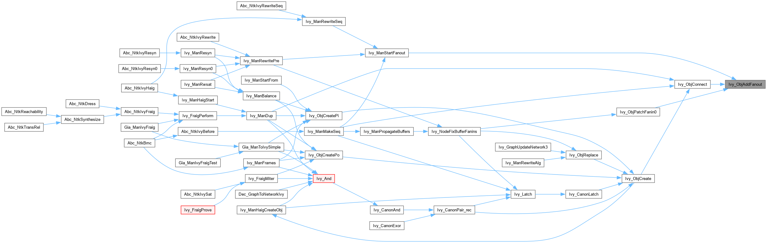 | void | Ivy_ObjAddFanout (Ivy_Man_t *p, Ivy_Obj_t *pFanin, Ivy_Obj_t *pFanout) |